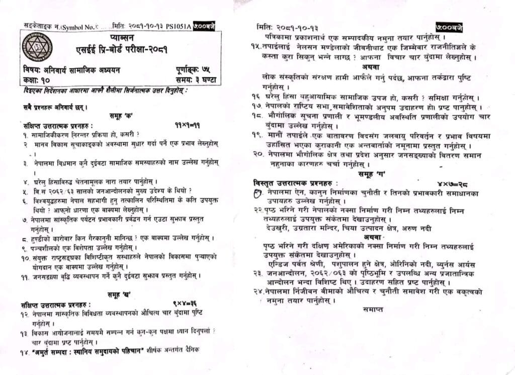 Pre-board nepali model set question
